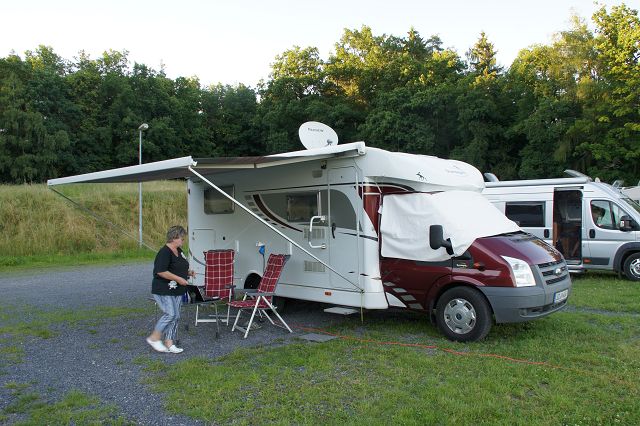 Am Strassenrand ausgeschildert ein Stellplatz Pottenstein. Es ist wirklich nur ein Stellplatz für eine Nacht.